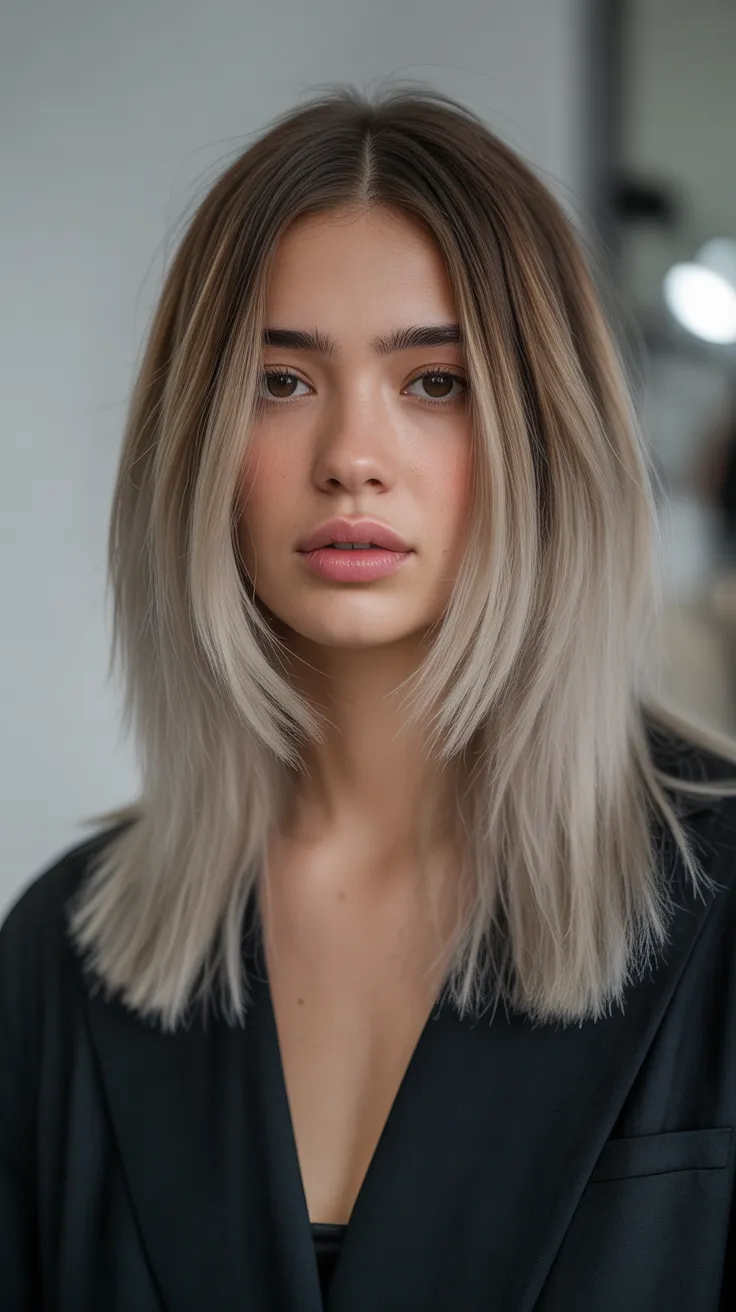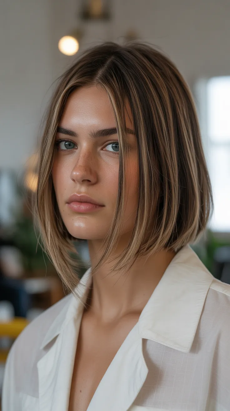 The image showcases a stunning example of this haircut. The model’s sleek, straight hair falls gracefully with soft, angled layers that enhance her features. This style is not only cute but also versatile, perfect for both casual outings and more formal events.