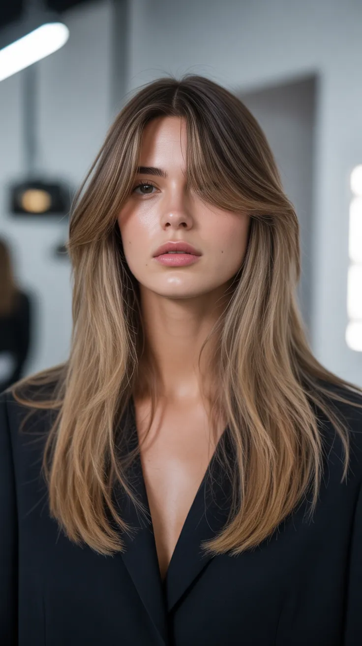 17. Long Layered Cut With Barely-There Bangs