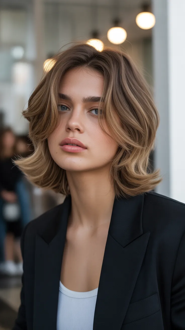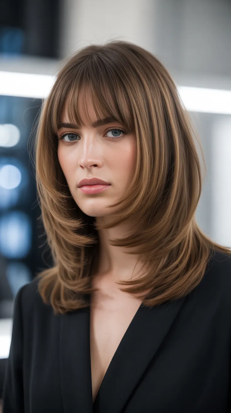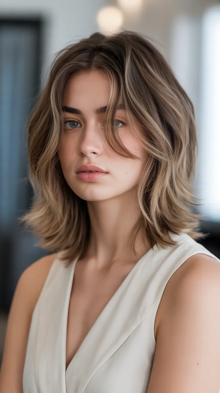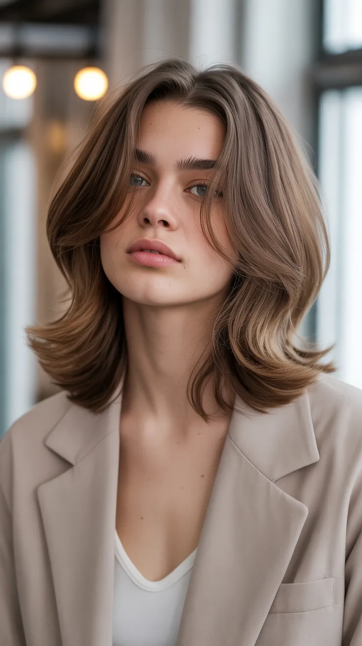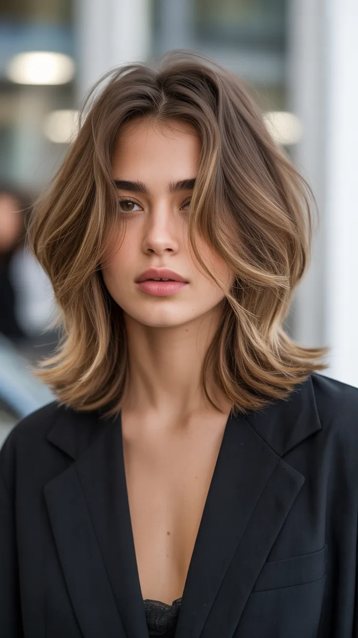 This haircut works well for various hair types, especially for layered mid length hair. It enhances natural texture and movement, making it a great option for hairstyles for layered hair. If you have wavy hair, this cut can highlight those lovely waves while keeping things chic.