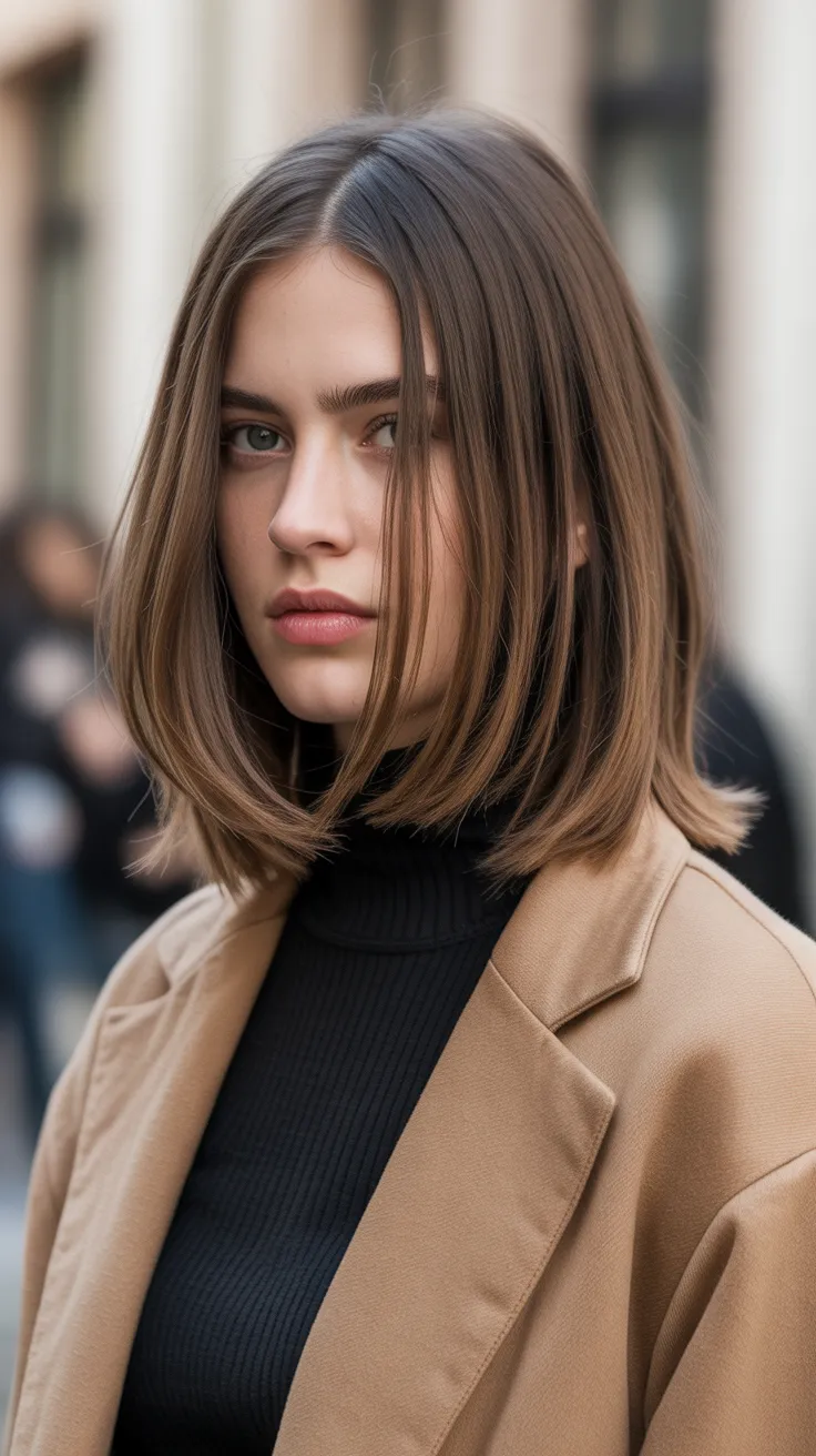 In the image, you can see a beautiful example of this haircut. The straight strands frame the face nicely, while the blunt ends create a clean line. This style works well for various occasions, from casual outings to more formal events.