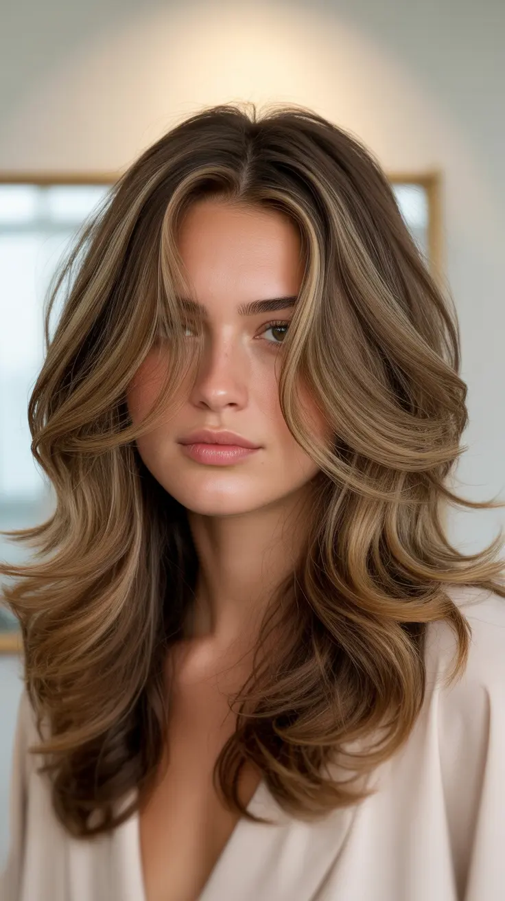 Layered waves with highlights are a fantastic choice for anyone looking to add volume and dimension to their light chocolate brown hair. This hairstyle combines soft, flowing waves with subtle highlights that catch the light beautifully, creating a soft, natural glow.