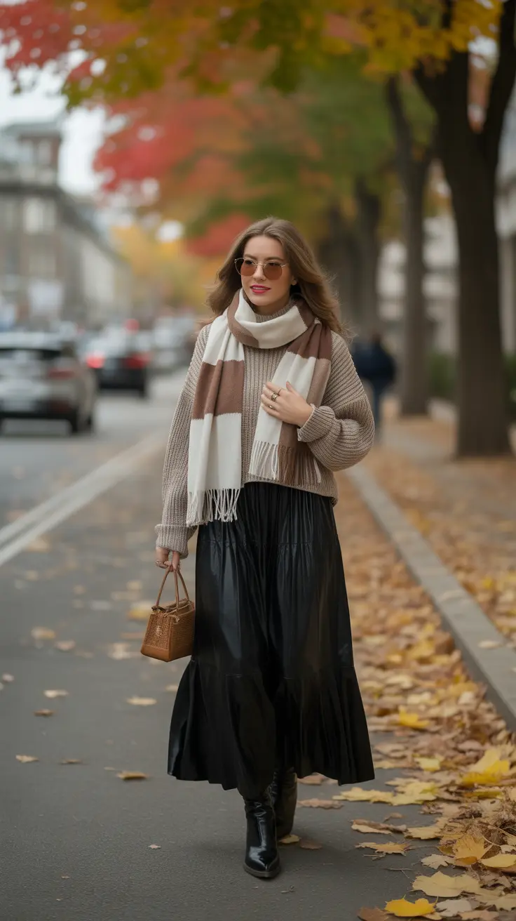 Fall is the perfect time to play with layers, and a black maxi skirt is a fantastic base for your outfit inspo. Picture this: a cozy, oversized sweater paired with a sleek black maxi skirt. This combination not only keeps you warm but also adds a touch of effortless style to your look.