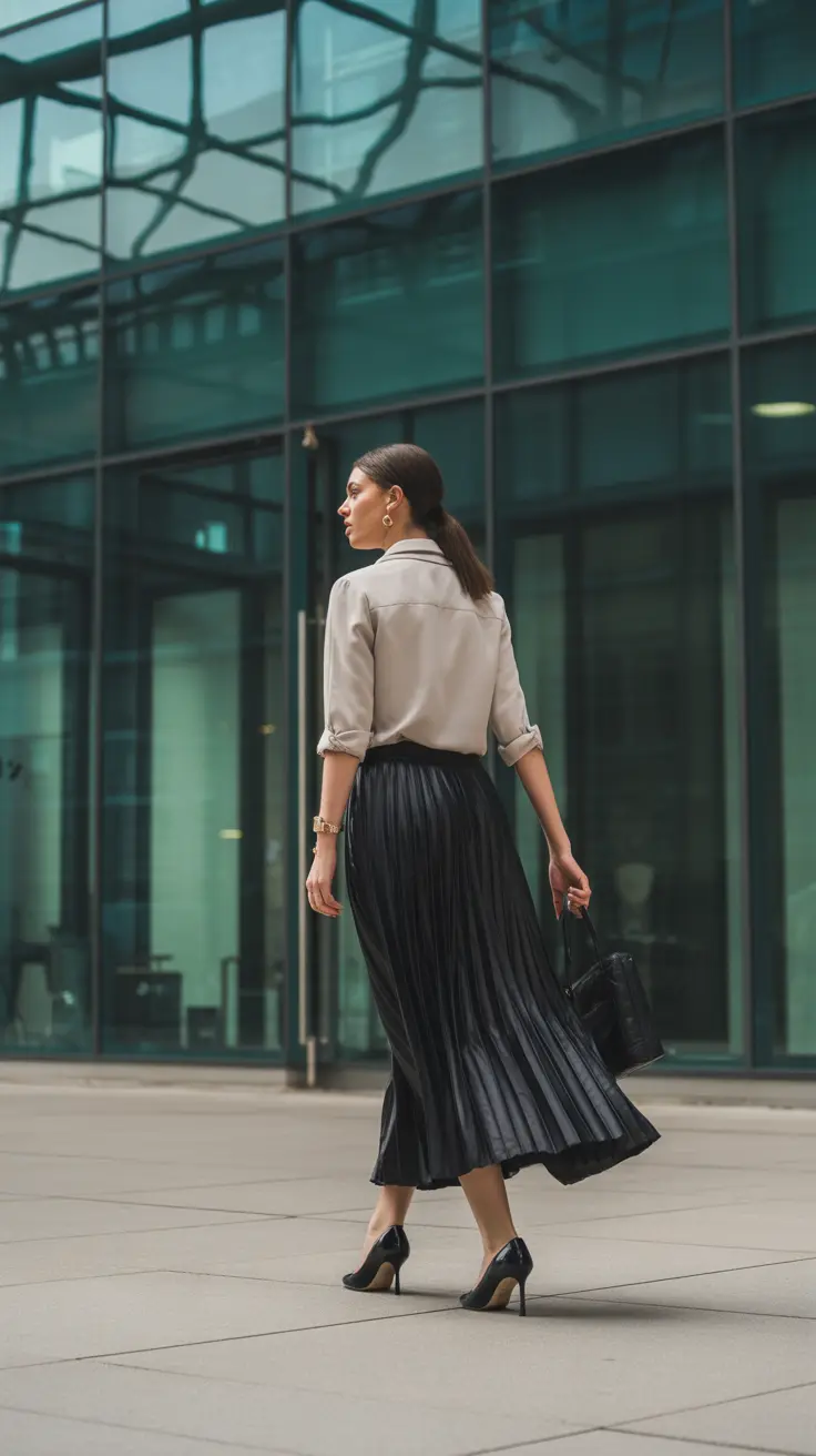 The outfit is designed for versatile dressing, allowing you to transition from day to night effortlessly. The fitted blazer adds structure, while the maxi skirt offers comfort and elegance. This combination ensures you feel confident and chic throughout your workday.