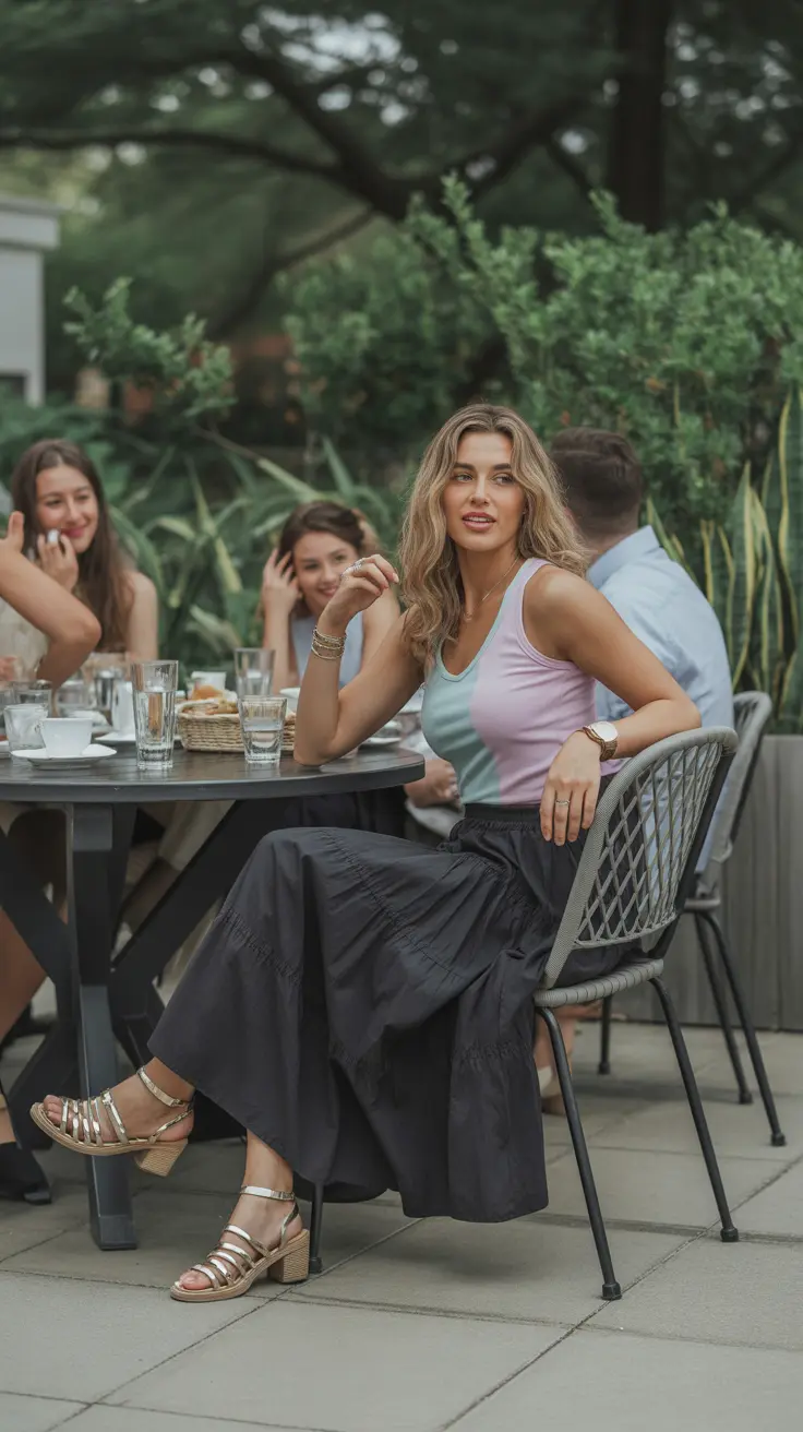 The black maxi skirt is a wardrobe essential that can be dressed up or down. When styled with a casual top, it creates a laid-back vibe that’s perfect for brunch. Opt for sandals or casual flats to keep things easy and breezy. This outfit inspo is all about versatility, allowing you to transition from brunch to a stroll in the park with ease.