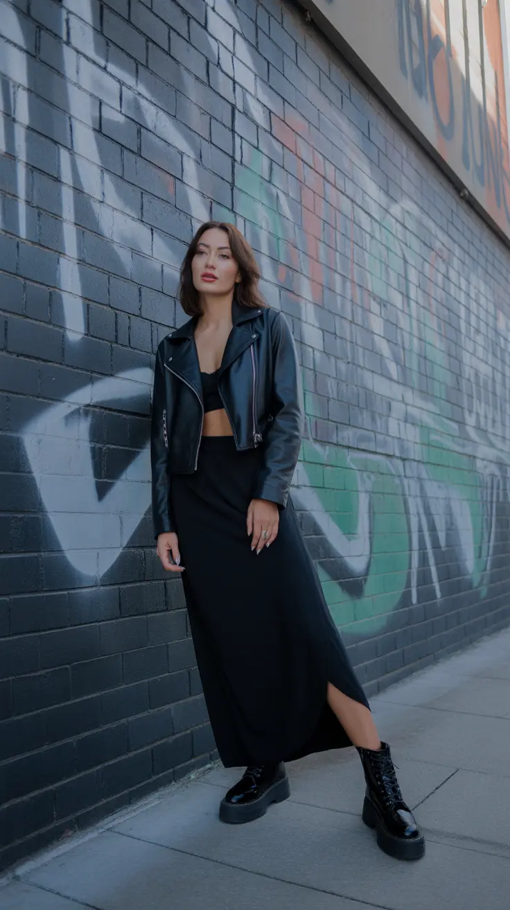 Pairing a black maxi skirt with a leather jacket creates an edgy look that’s perfect for any occasion. The leather jacket adds a bold touch, making the outfit stand out effortlessly. This combination is not just stylish; it also showcases the versatility of the black maxi skirt.
