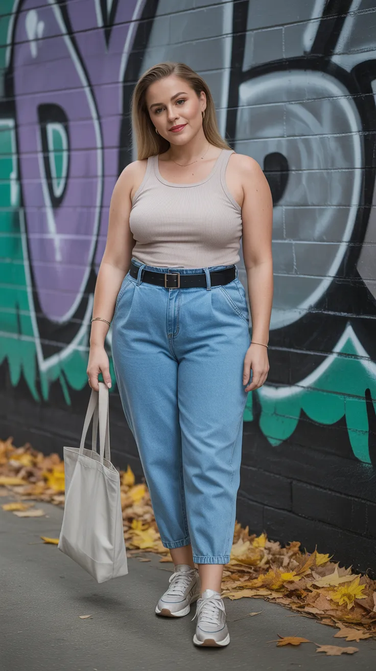 A tucked tank paired with paperbag jeans is a go-to for mid size outfits that balance comfort and style. This look flatters the midsize body by highlighting the waist while offering a relaxed vibe. Perfect for casual outings, it embodies the mid size aesthetic with a touch of mode inspiration.