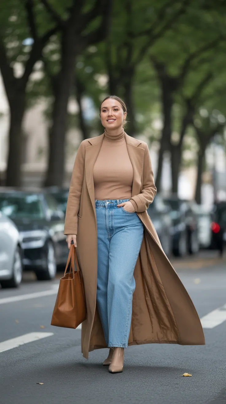 A long duster coat paired with straight-leg denim is a go-to for those looking to blend comfort with style. This look is perfect for mid size outfits, offering a flattering silhouette that enhances your shape. Whether you’re heading out for brunch or a casual day out, this combination adds a touch of mode inspiration to your wardrobe.