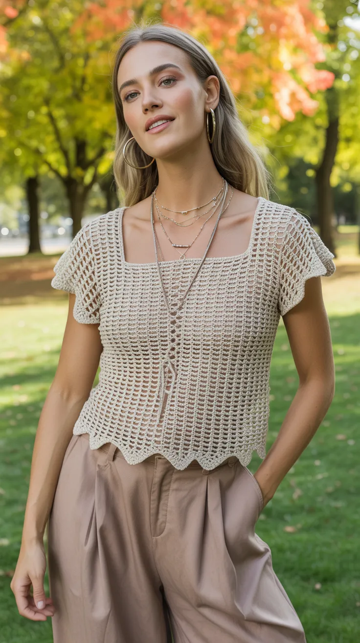 This look is perfect for those who love the mid size aesthetic. The crochet top adds a fun, bohemian vibe while the wide-leg pants keep it comfy and chic. It’s a stylish choice for anyone wanting to rock midsize body outfits with ease!