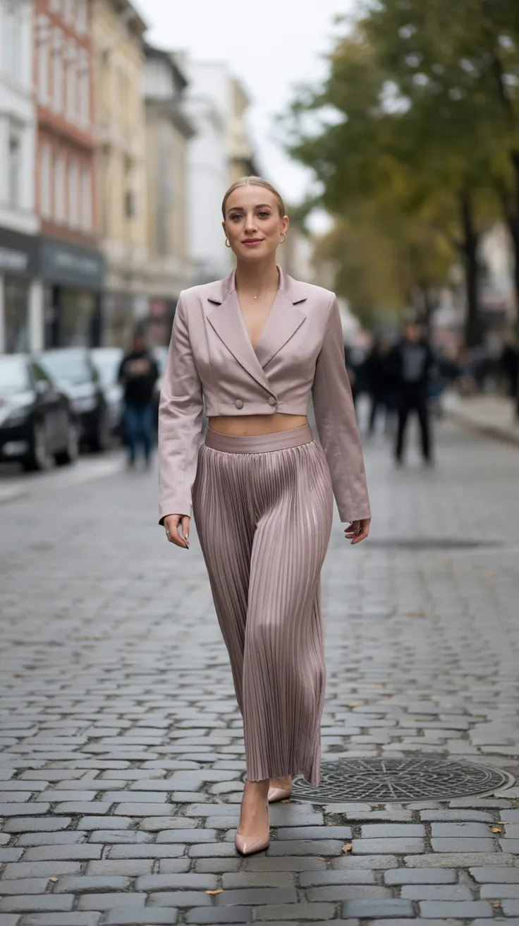 Cropped Blazer With Pleated Trousers