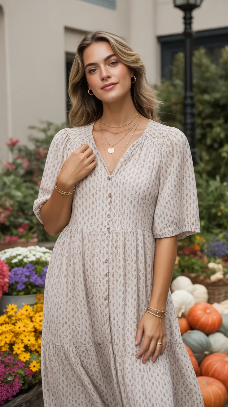 A printed maxi dress is a perfect choice for mid size outfits that are both stylish and comfortable. Pair it with layered jewelry to add a touch of flair and personality to your look. This combination not only flatters a midsize body but also embodies the mode hippie vibe, making it a go-to for any casual outing.