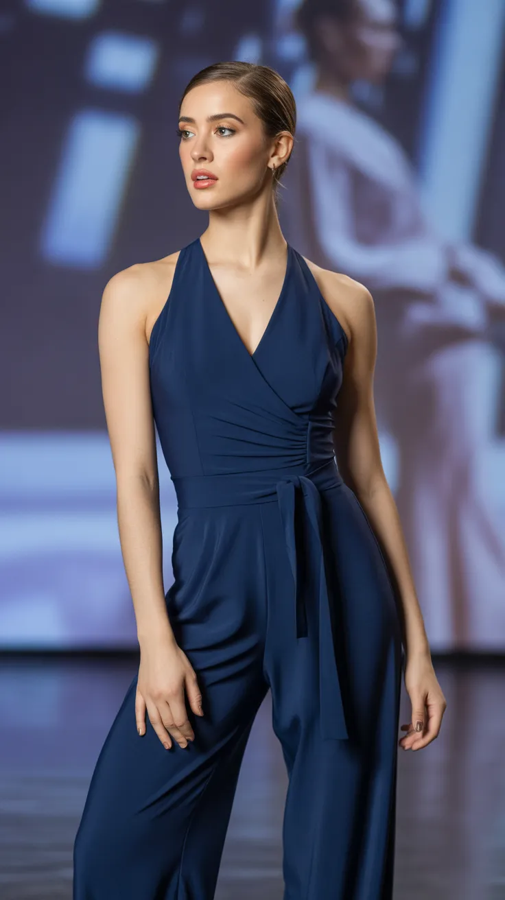 12. Navy Jazz Dance Jumpsuit With Belt Detail