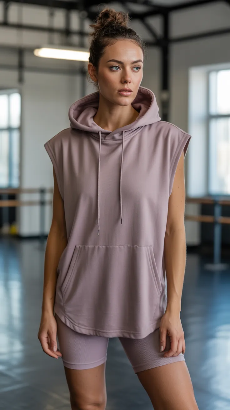 17. Sleeveless Hoodie Over Compression Shorts