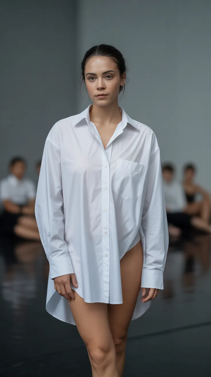 When it comes to modern dance outfits, a white oversized shirt paired with bare legs is a fresh and stylish choice. This look perfectly balances comfort and performance. The loose fit of the shirt allows for easy movement, making it ideal for various dance styles.
