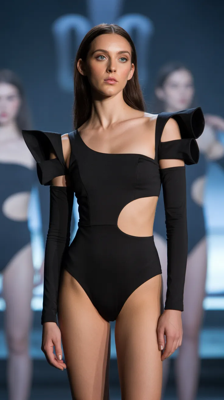 7. Black Cutout Bodysuit With Structured Sleeves