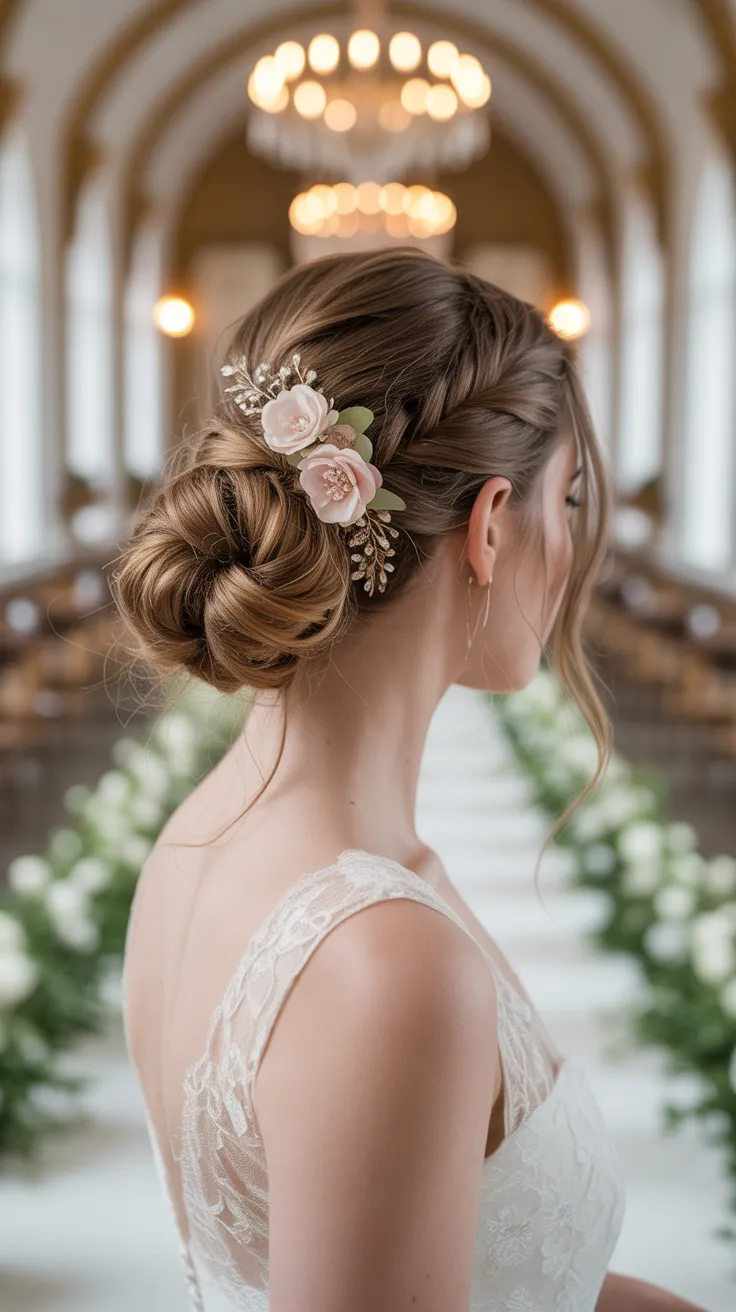 16. Romantic Twisted Bun With Floral Comb