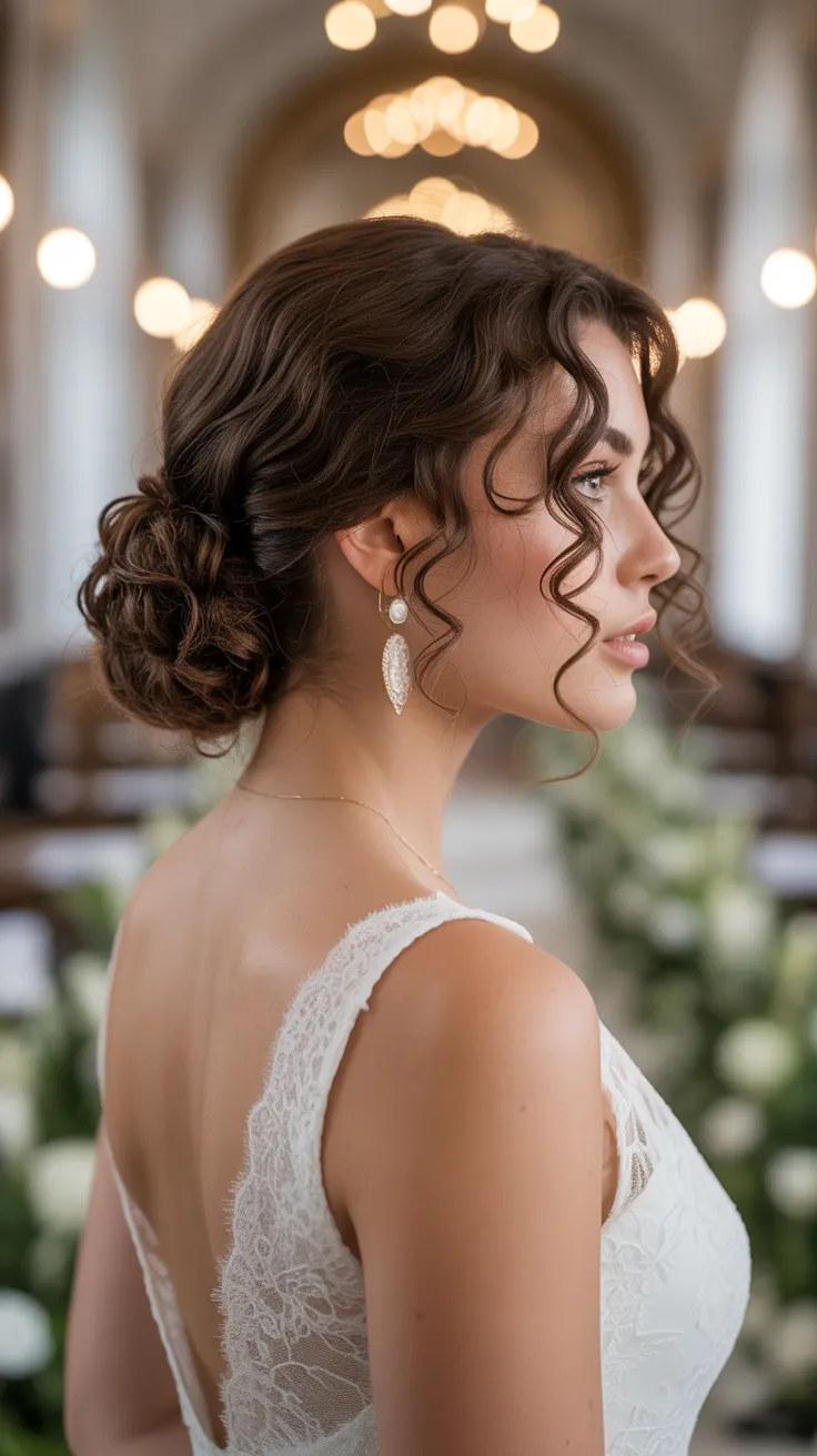 For brides with curly hair, this low updo wedding hair curly option is fantastic. It embraces the natural texture while keeping everything neat and polished. A curly braided updo can also be incorporated for added flair, making it a unique choice for those who want something a bit different.