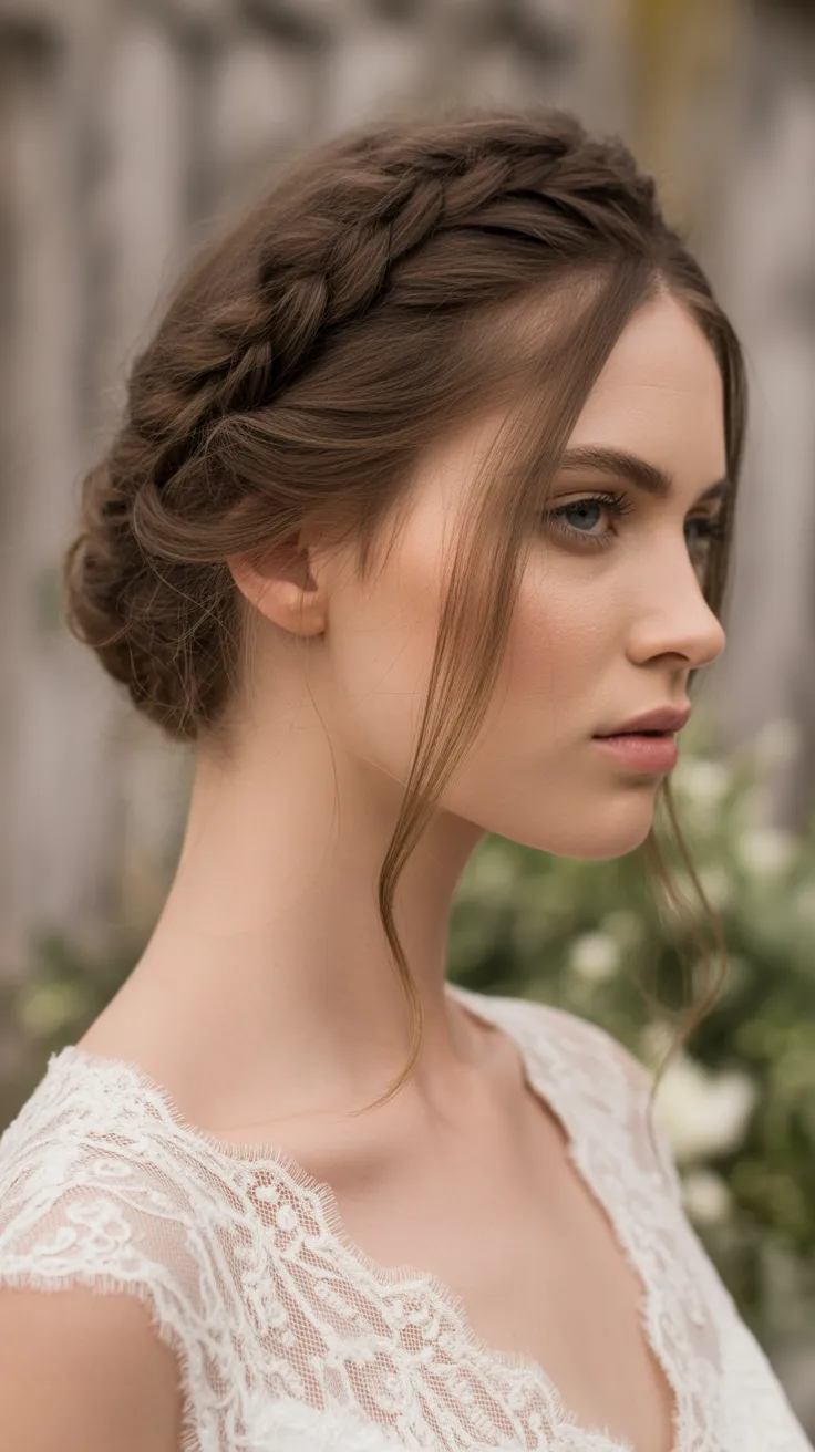 The braided crown updo is a stunning choice for brides looking to showcase their natural beauty. This style combines elegance with a playful twist, making it perfect for a wedding day. The intricate braids create a lovely crown effect that frames the face beautifully.