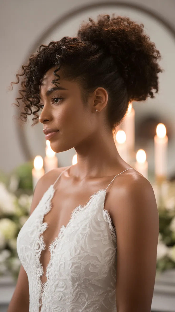 This look is ideal for those with curly hair, as it highlights the natural texture beautifully. The curls can be styled in various ways, whether they are loose or tightly coiled, giving you the freedom to express your personal style. Adding bridal hair accessories can enhance this updo, making it even more special for your big day.