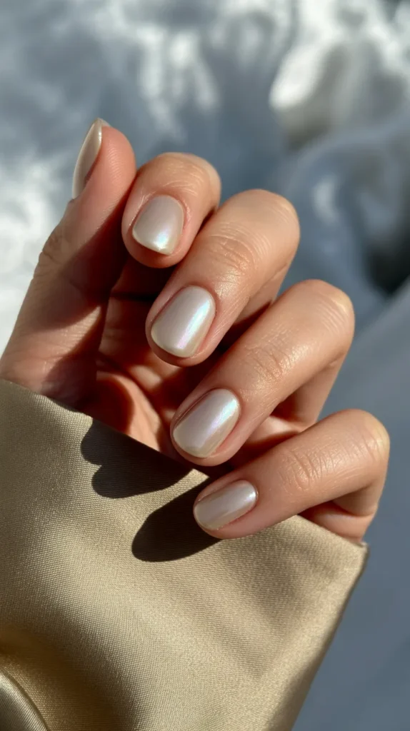 Pearly beige nails reflect winter light like a soft candle glow. The subtle sheen gives depth to the neutral tone, keeping it elegant and fresh. They’re the ultimate winter neutral nails look for anyone who loves minimal glam. ✨