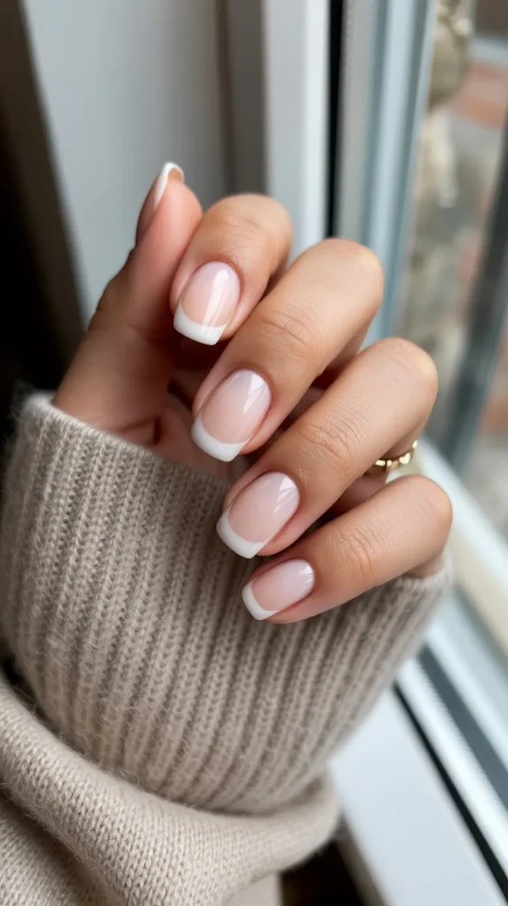 Sandstone French fade nails are clean, subtle, and so easy to wear. The beige-to-white gradient mimics natural nail tones for a barely-there effect. It’s a modern twist on French nails and a top pick for neutral winter nails lovers. 🕊️