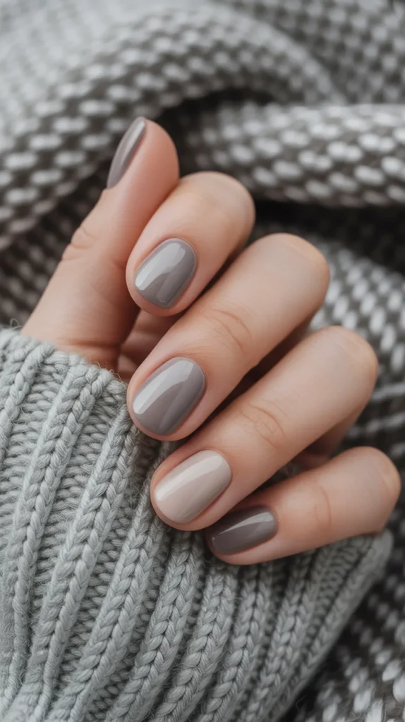 Soft greige ombré nails blend grey and beige so seamlessly that you’ll want to stare at them all day. The fade feels calm and luxurious a quiet detail that fits perfectly with winter neutral nails trends. It’s modern minimalism at its best. 🌫️
