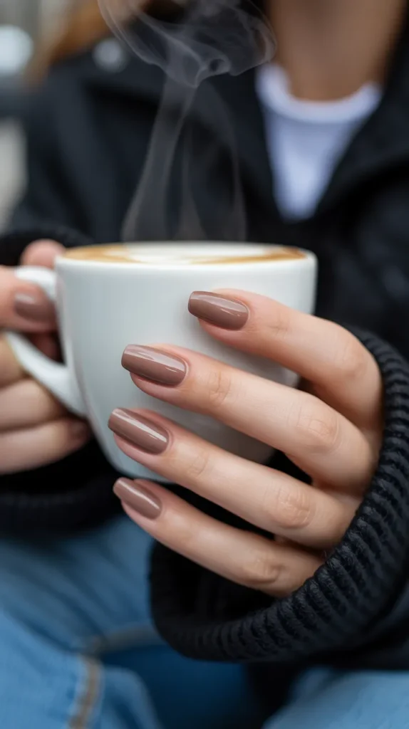 🤎 Mix your textures: Combine matte and glossy finishes for modern neutral winter nails with subtle contrast.