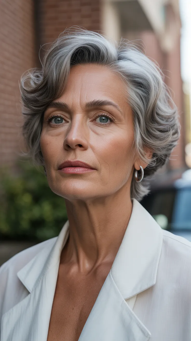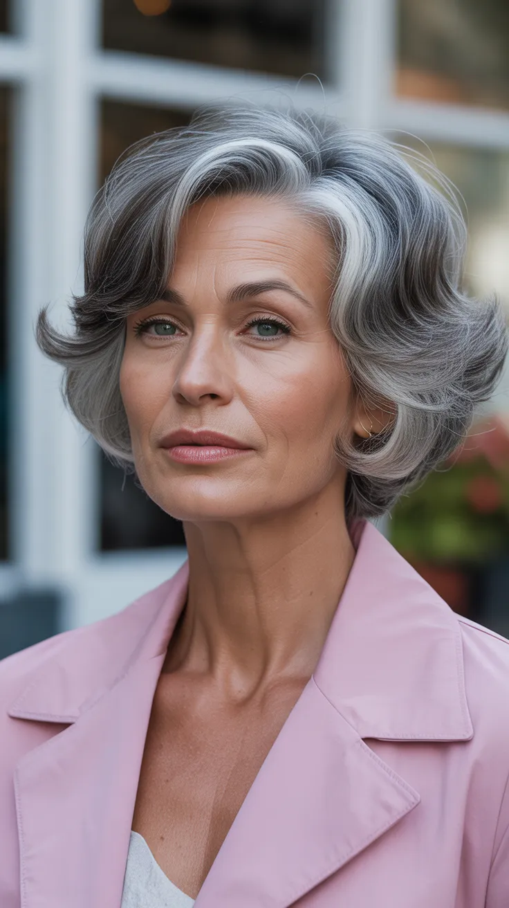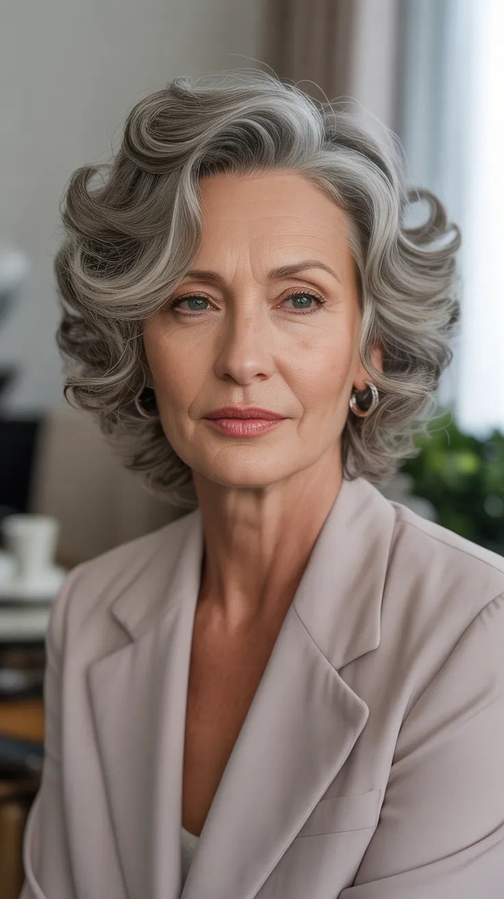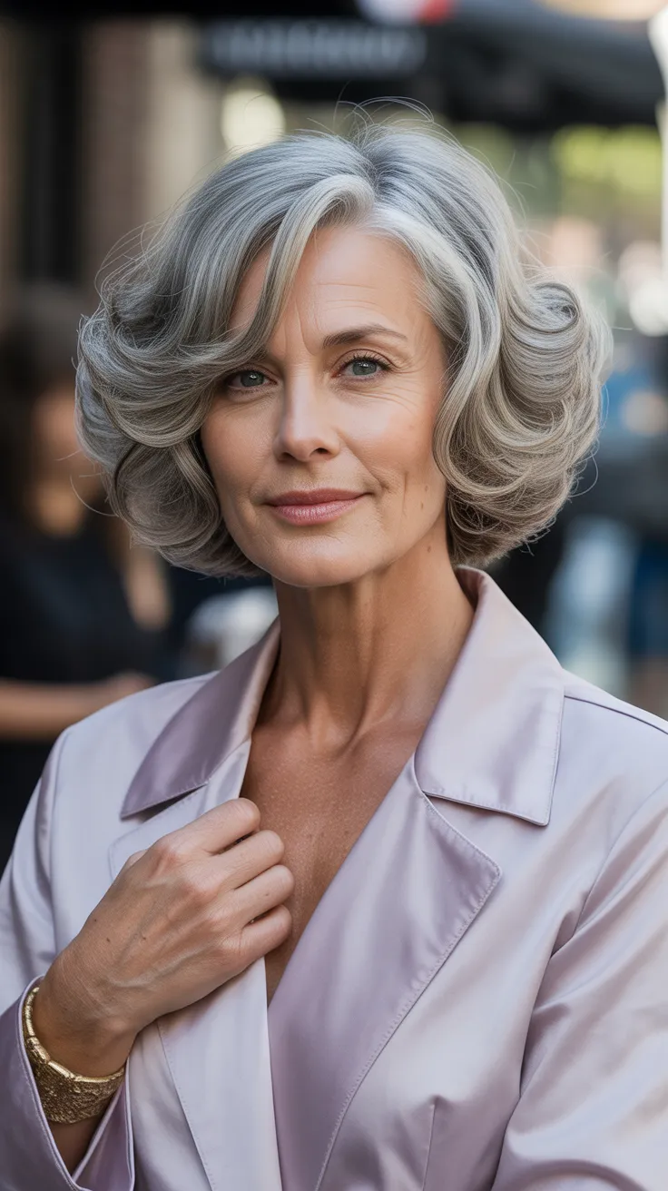 The chin-length bob is a classic hairstyle that never goes out of style. This look is perfect for older women who want to embrace their ageless beauty while keeping things fresh and modern. The natural waves add a playful touch, making the hairstyle feel effortless and chic.
