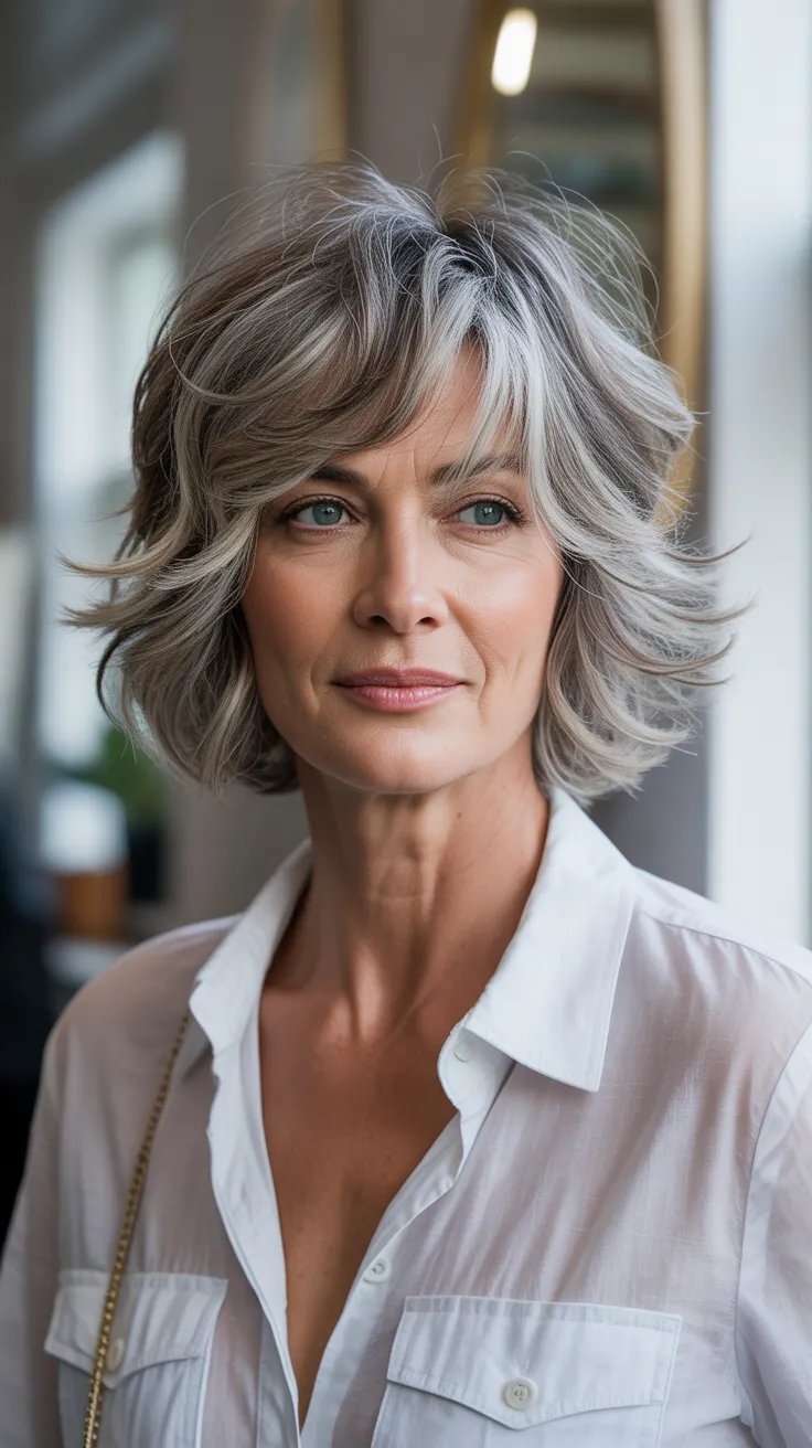 The tousled shag bob is a fantastic choice for those seeking a stylish and fresh look. This hairstyle combines layers and texture, creating a fun and carefree vibe. It’s perfect for women who want to embrace their ageless beauty while keeping things modern.