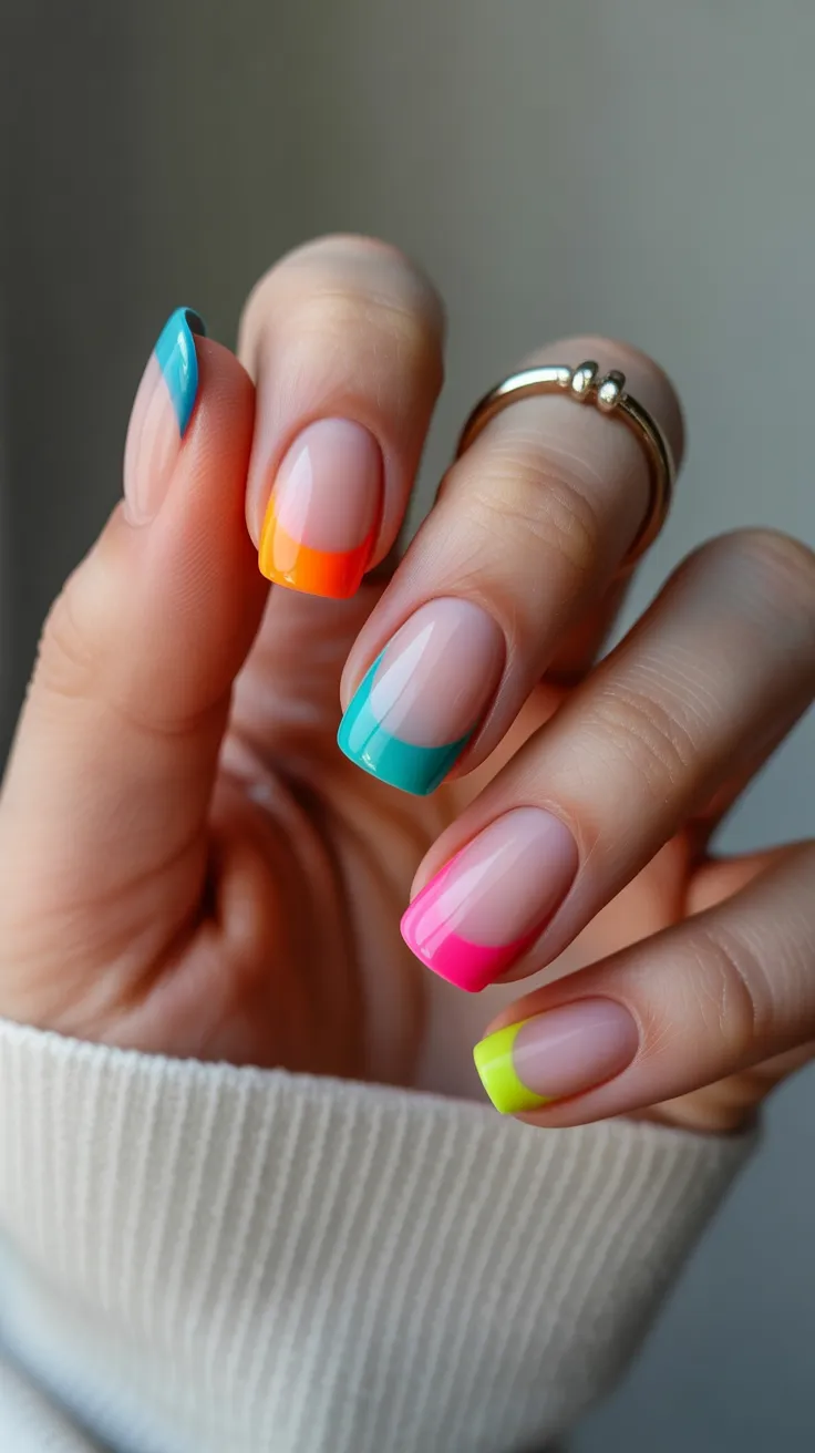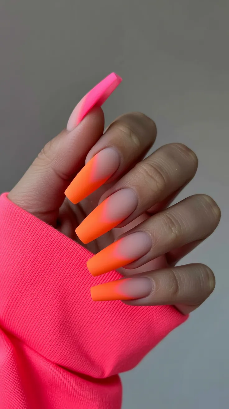 Neon ombre nails are a fun way to add a pop of color to your look. This style blends bright hues seamlessly, creating a striking gradient effect. The matte finish gives it a modern twist, making it stand out even more.
