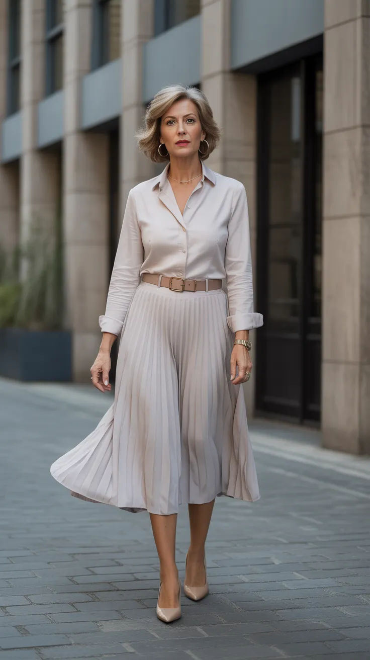Accessorizing with simple jewelry and comfortable shoes can complete the outfit. This style is not just about looking good; it’s about feeling confident and stylish at any age. So, whether you’re heading out for brunch or a casual evening, this combo is a go-to choice for over 50 women’s fashion.