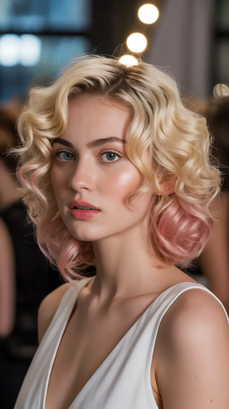 The wavy lob hairstyle is a fantastic way to showcase a blend of soft pink and blonde hues. This look is playful yet sophisticated, making it perfect for anyone wanting to add a touch of color to their style.