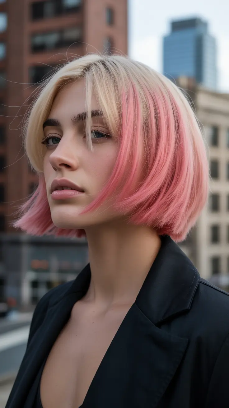 20. Edgy Bob With Pink-Blonde Color Blocking