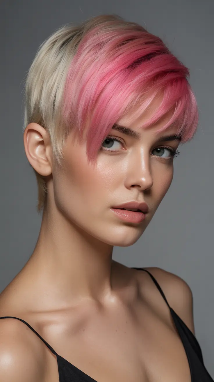 The pixie cut is a classic style that never goes out of fashion. When you add pink and blonde panels, it transforms into something fresh and exciting. This look combines the boldness of pink with the softness of blonde, creating a stunning contrast that is sure to turn heads.