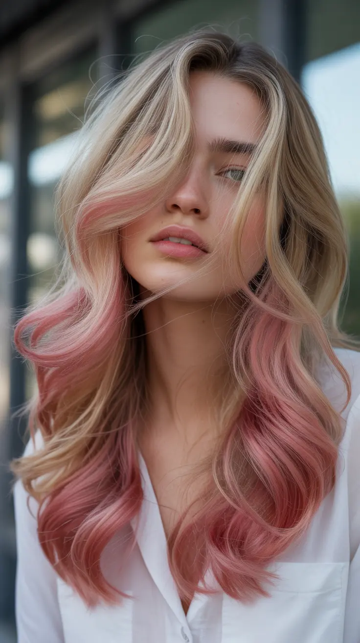 The combination of blonde and pink hair is not just trendy; it’s a way to express individuality. This look is ideal for those who want to experiment with pastel hair ideas while keeping it chic. The rose gold balayage effect can also enhance this style, giving it depth and dimension.