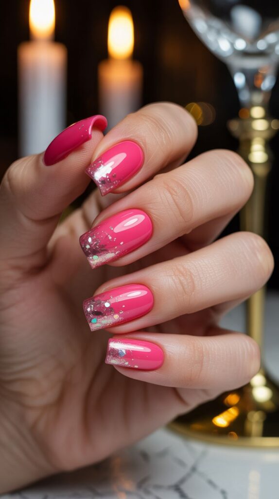 ✨ Add Glitter or Chrome: Pink glitter and rose chrome instantly elevate any festive manicure.