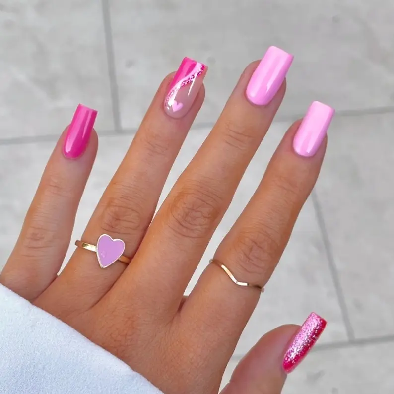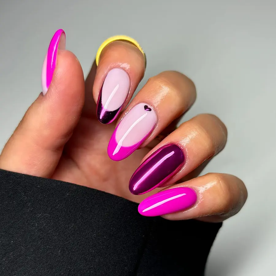 3. Pink Chrome Mix Nails With High-Gloss Color Blocking