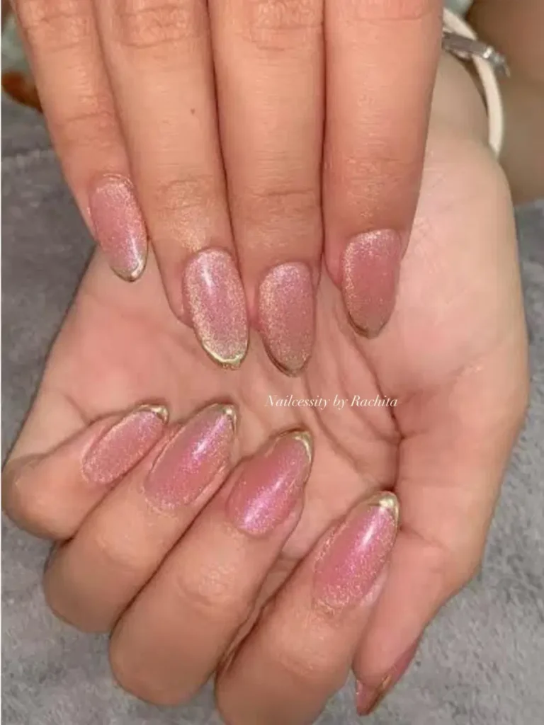 11. Soft Rose Pink Chrome Nails With a Subtle Gold-Edged Glow