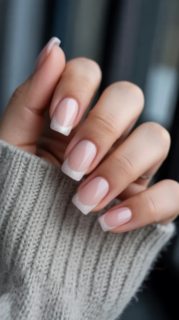A dusty rose French manicure is subtle but stunning. The silver glitter edge adds a twinkle of winter sparkle without being too flashy. It’s timeless, polished, and gives that “effortlessly put together” vibe. ✨