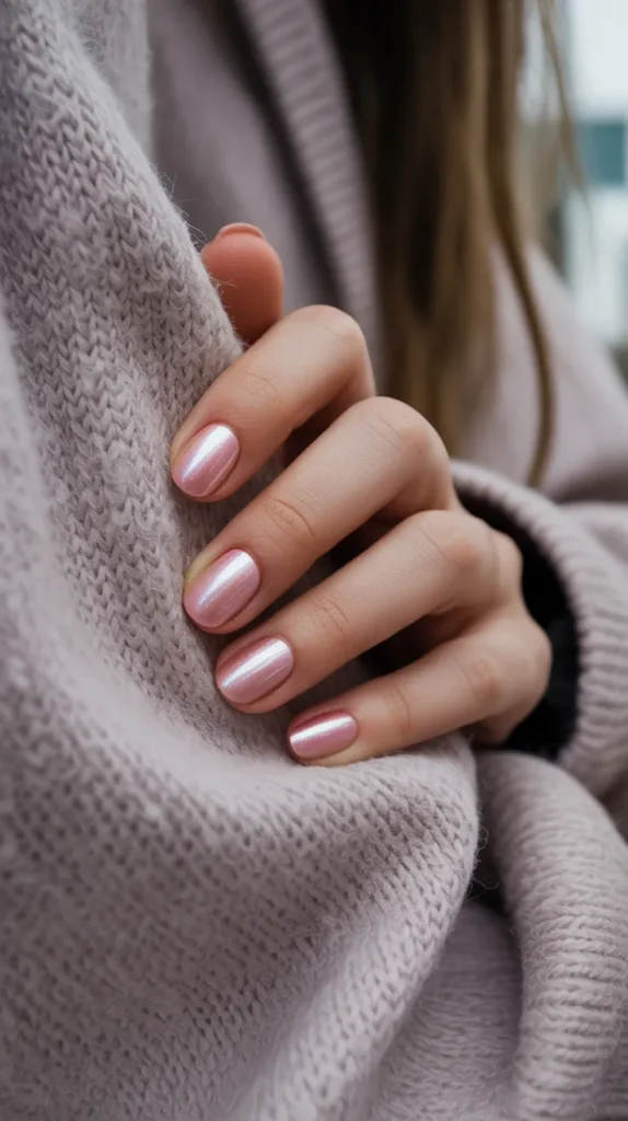 💅 Try frosty finishes: Pearl or chrome pinks mimic the glow of winter light beautifully.