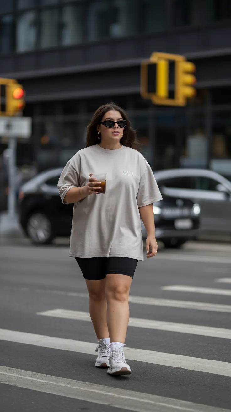 This look is perfect for those sunny days when you want to feel comfy yet stylish. Pairing an oversized tee with bike shorts creates a relaxed vibe that flatters every curve. Don’t forget your favorite sunglasses to complete this cute plus size outfit!