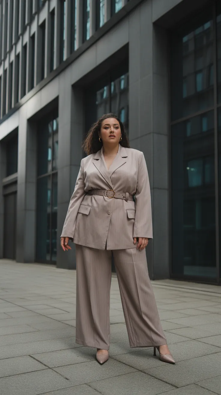 This belted blazer paired with wide-leg trousers is a chic choice for any occasion. It flatters curves while keeping things stylish and professional, making it perfect for cute plus size office outfits. Whether you’re heading to a meeting or a lunch date, this look is sure to impress!
