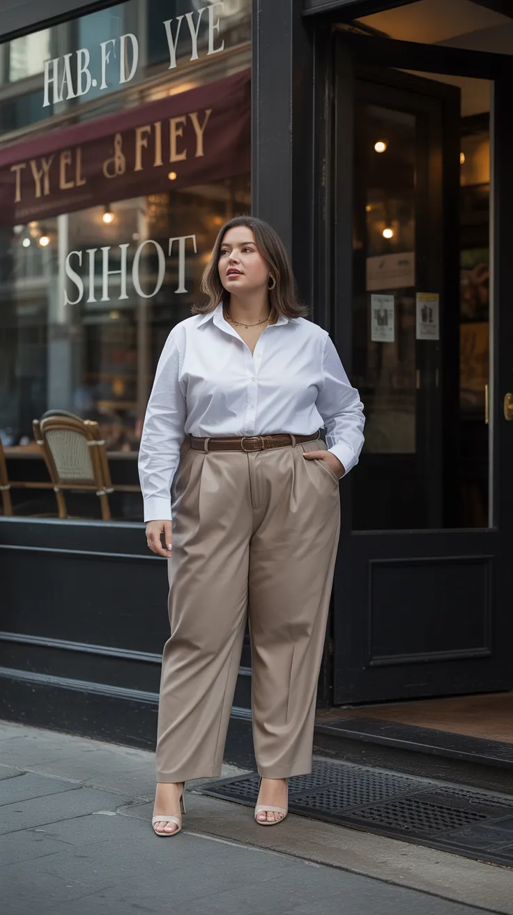 A button-up shirt paired with relaxed slacks and heels is a chic choice for any occasion. This look is perfect for cute plus size office outfits, offering both comfort and style. With the right fit, you can flaunt your curves and feel confident in big size fashion.