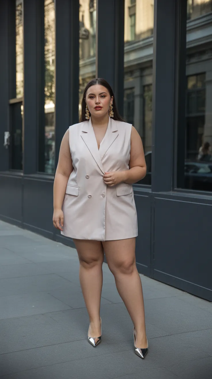 This sleeveless blazer dress is a chic choice for any occasion. Pair it with pointed flats for a polished look that’s perfect for cute plus size office outfits or a night out. It’s a stylish way to embrace your curves and feel confident in big size fashion.