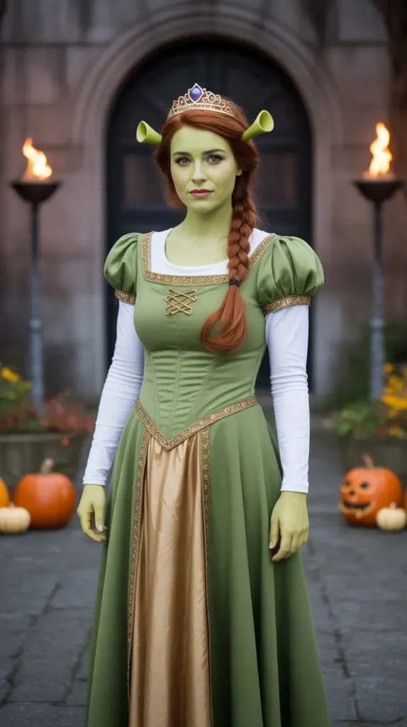Fiona is the perfect mix of fairytale beauty and Halloween fun. πΏ Her green medieval gown and jeweled tiara make her a classic princess, but you can add green face paint if you want her ogre version. This is one of those princess costume ideas that gives you two looks in one. Add a castle courtyard backdrop with pumpkins, and itβs instantly festive. Fiona is playful, charming, and stands out because sheβs not your βtypicalβ princess.