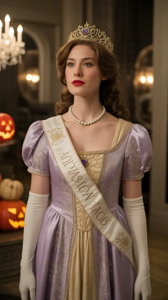 Bring vintage glamour to Halloween with Anastasia. π A richly detailed gown, pearl necklace, and jeweled crown make this look royal and elegant. Loose waves and a sash complete the vibe. Add a ballroom backdrop with chandeliers and glowing pumpkins for a magical effect. This is one of those princess costume ideas that feels historical but still fairytale-perfect. Itβs unique, chic, and sure to turn heads.