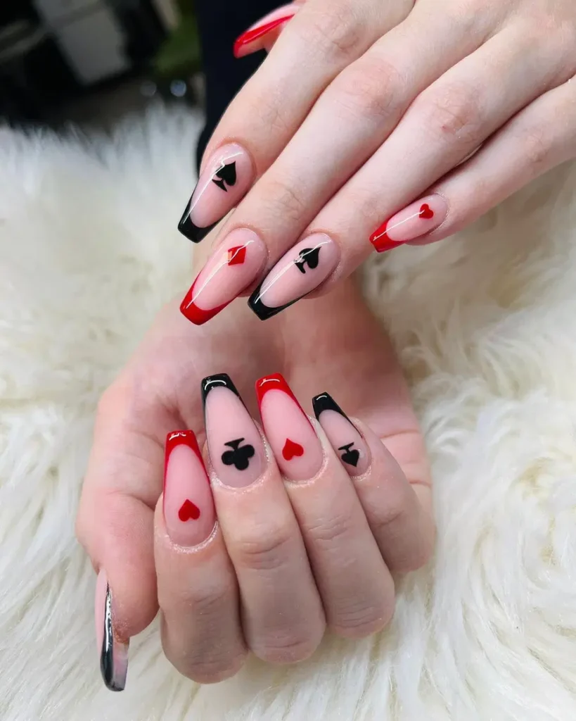 2. Playing Card French Tips With a Flirty Twist