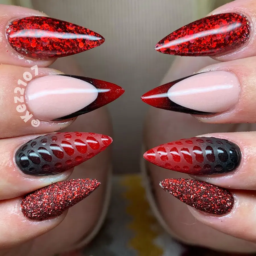 17 Red and Black Nails That Channel Bold Attitude With Dope Nails 🖤