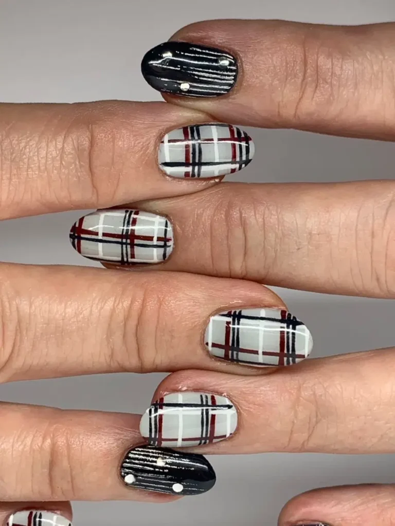 17. Classic Plaid Nails With a Modern Black Accent