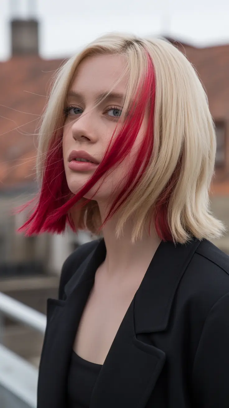12. Shoulder-Length Blonde Hair With Crimson Streaks