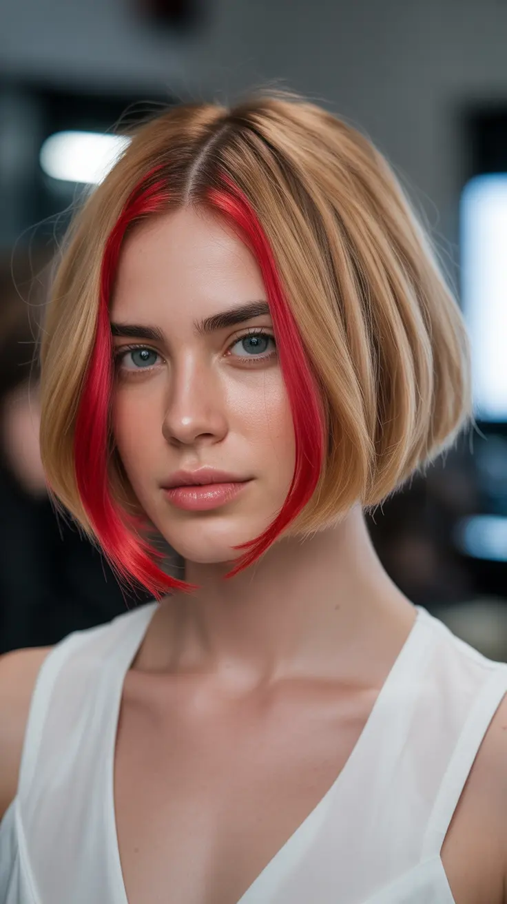 This look is perfect for those who want a fresh, modern vibe. The bob cut itself is chic and easy to maintain, making it a great option for busy lifestyles. The addition of red hair with blonde highlights gives it a unique twist, ensuring that your hair stands out in any crowd.